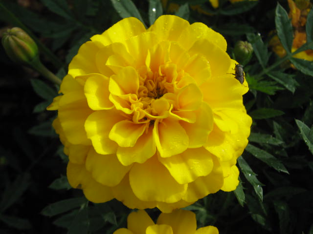 黄色のヒャクニチソウの花に。 o(^▽^)o