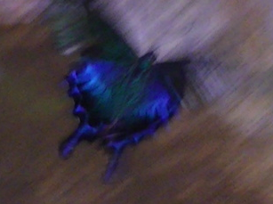 大きいチョウチョ発見。青く光っています。なかなか羽を止めません。《C!》