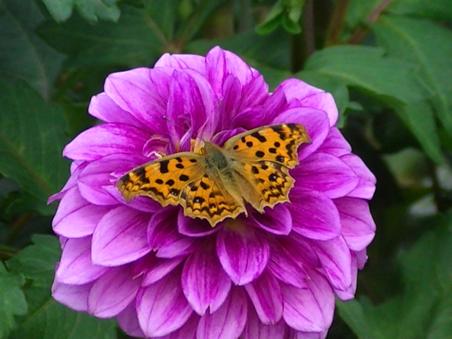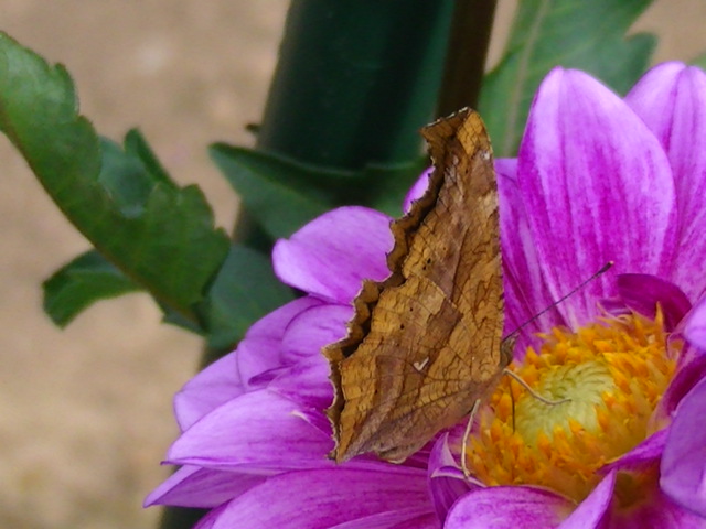 今度はダリアの花で見つけましたよ。 《C! 羽閉じました》