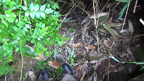 左の靴から水が入ってきます。2cmくらいの水深の川。