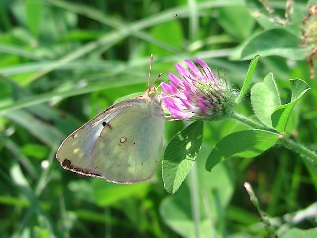 またチョウチョさんがアカツメグサにやってきました。 o(^▽^)o