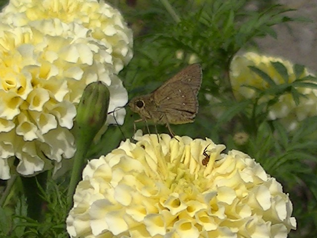 民家の前にクリーム色のきれいな花が、、、やはりいました。