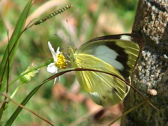 白いチョウチョさんがとまりました。よく見たら黄色? \(^_^)/ 《C!草がジャマ》